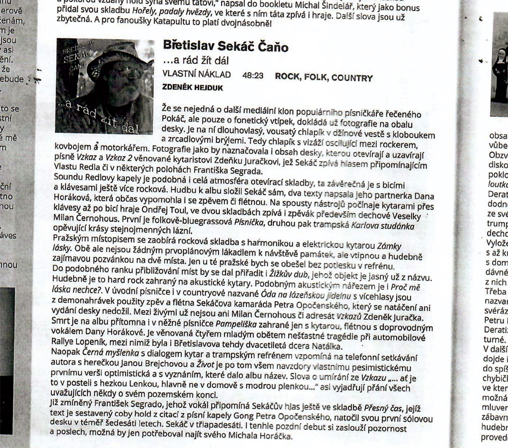 Je autorem vlastního programu „Sekáč vypráví“ a také pořadu s Pavlem Novým „S vámi nás baví svět“. Vystupuje také se svou přítelkyní Danou Horákovou, která jeho písně obohacuje flétnou a zpěvem a je také autorkou několika textů. Zároveň doprovází sólové recitály např. Vlastimila Harapese, Marie Tomsové či jiných kamarádů umělců.